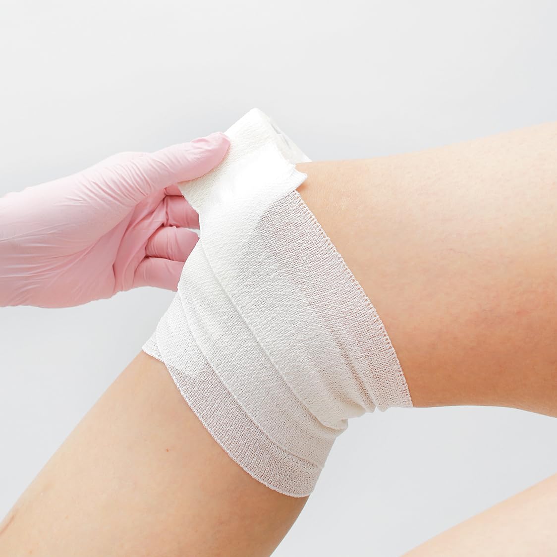 【巻きずれや緩みが少ない】重ねて巻くと、包帯どうしがくっつき、巻きずれや緩みがおきにくいです。