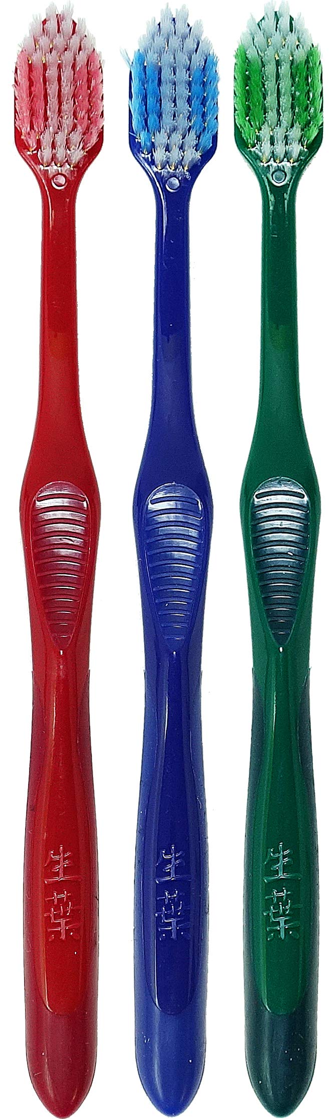●中央の歯間清掃毛が歯間に入り込むので、歯と歯間を同時に磨ける歯槽膿漏対策歯ブラシ