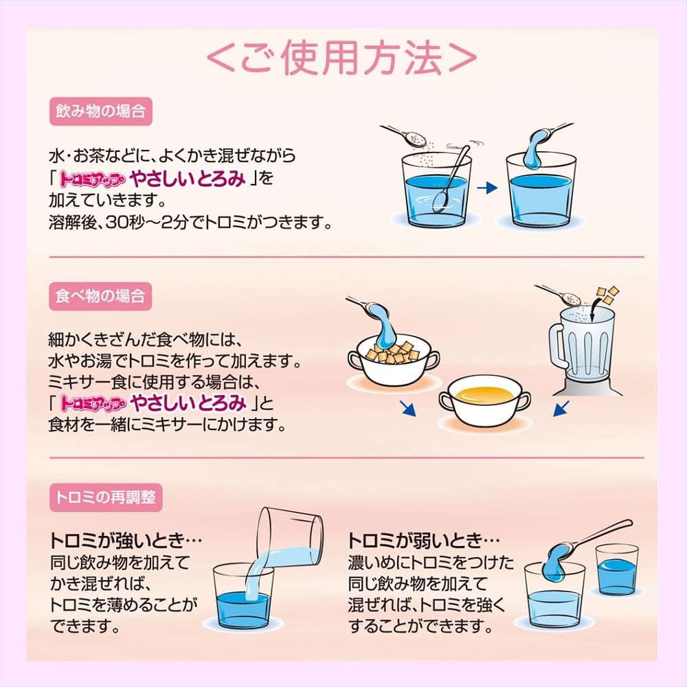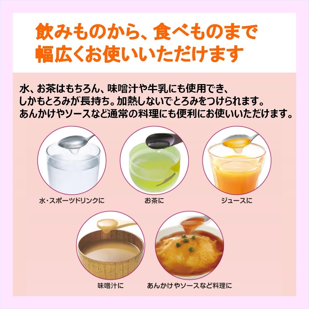 ●飲み物・食べ物を飲み込みやすくしたり、あんかけやソースなど料理にも便利です。