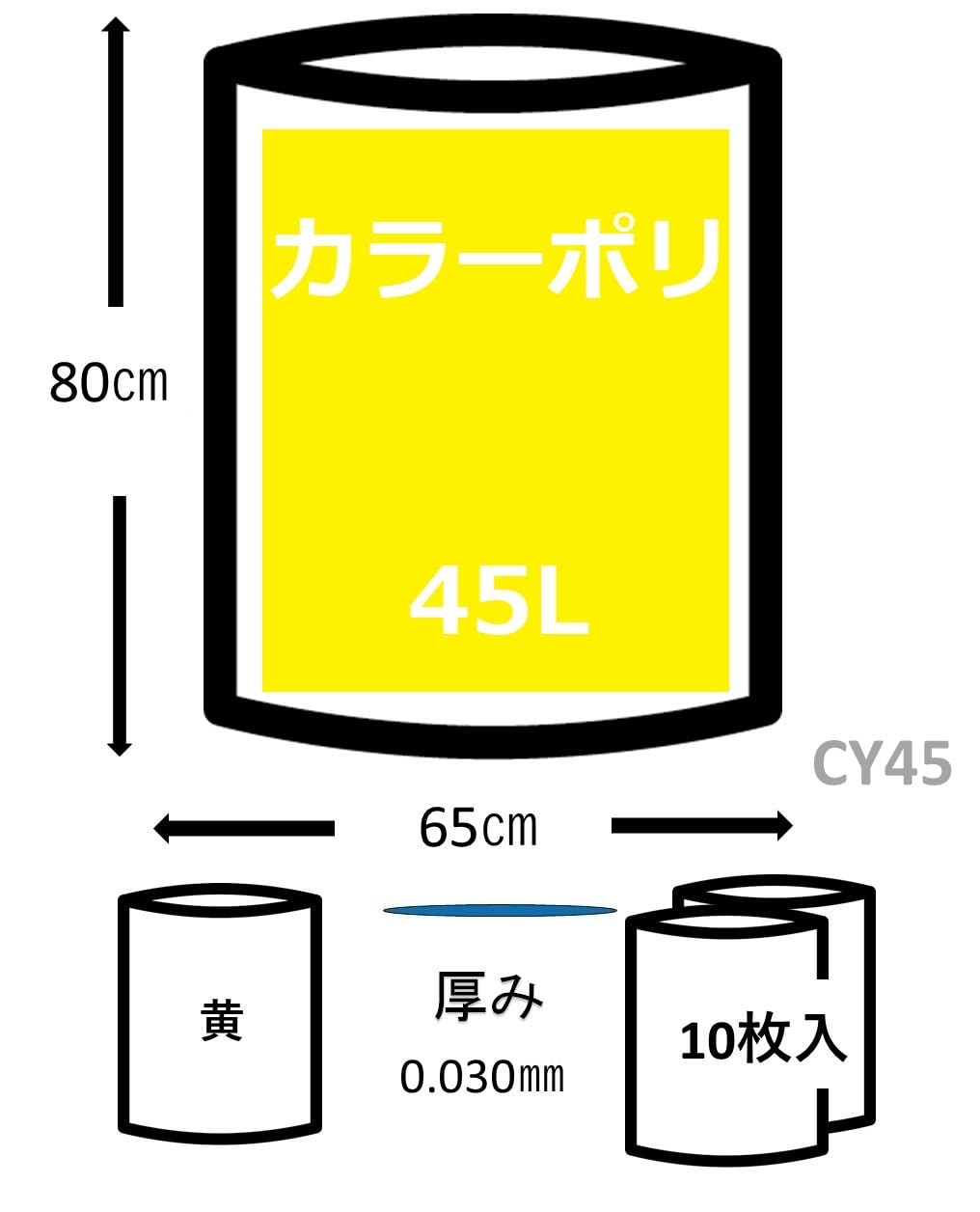 ジャパックス ゴミ袋 イエロー 45L 縦80cm×横65cm×厚み0.003mm ポリ袋 カラータイプ 黄色 ツルツルタイプ 業務用 工作 10枚入 CY45