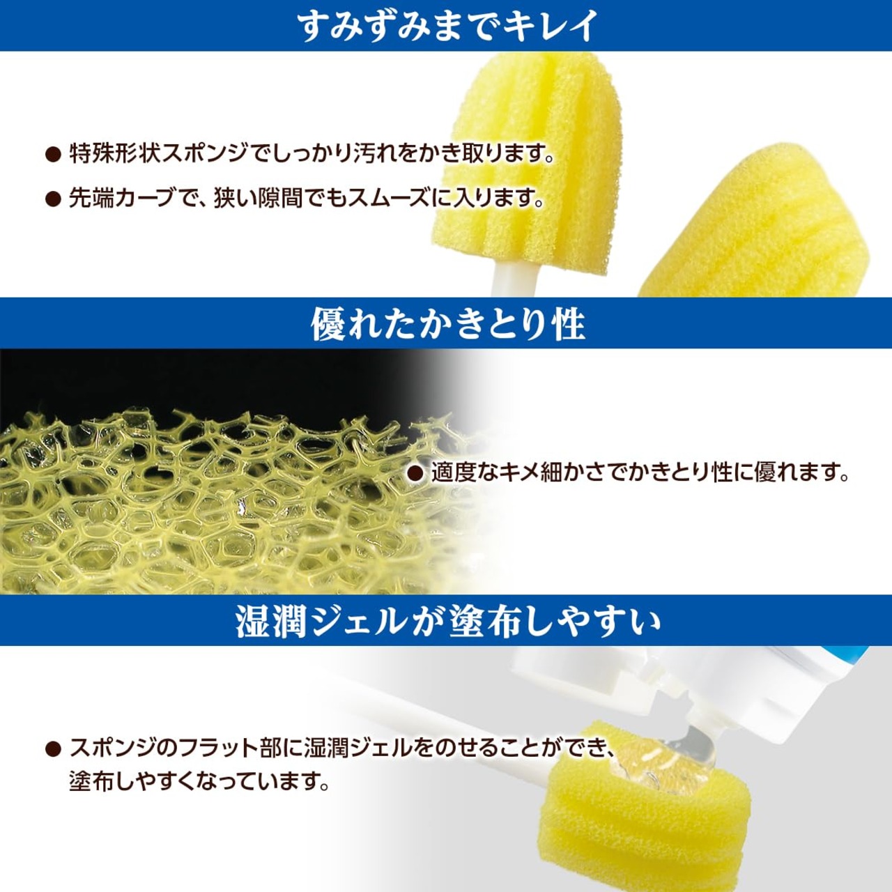 特殊形状スポンジでお口のすみずみまでキレイ!