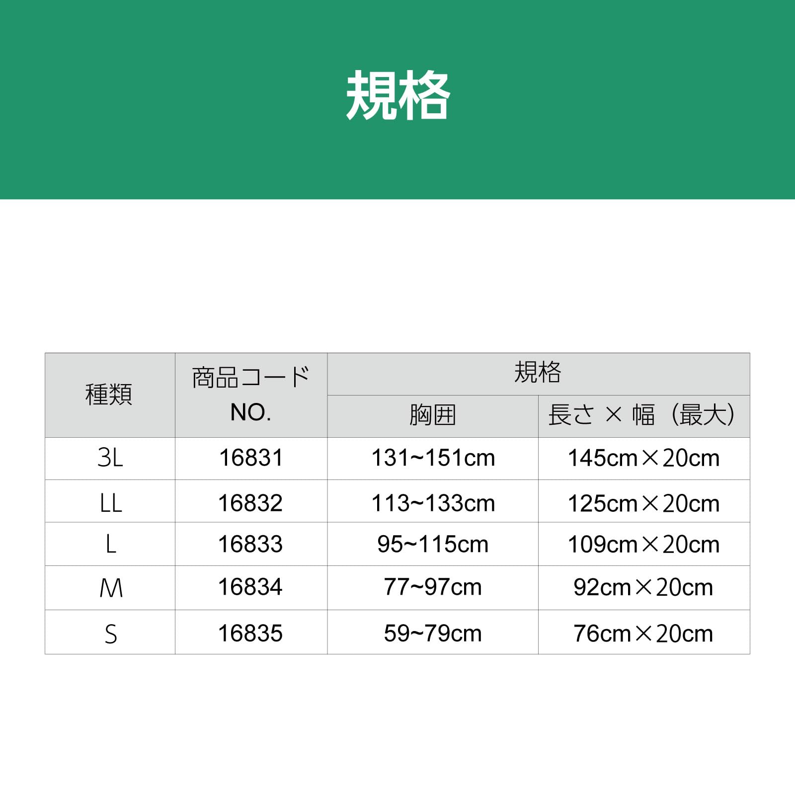 商品サイズ (幅×奥行×高さ) :適応範囲 (胸囲:77~97cm、長さ×幅 (最大):92cm×20cm)