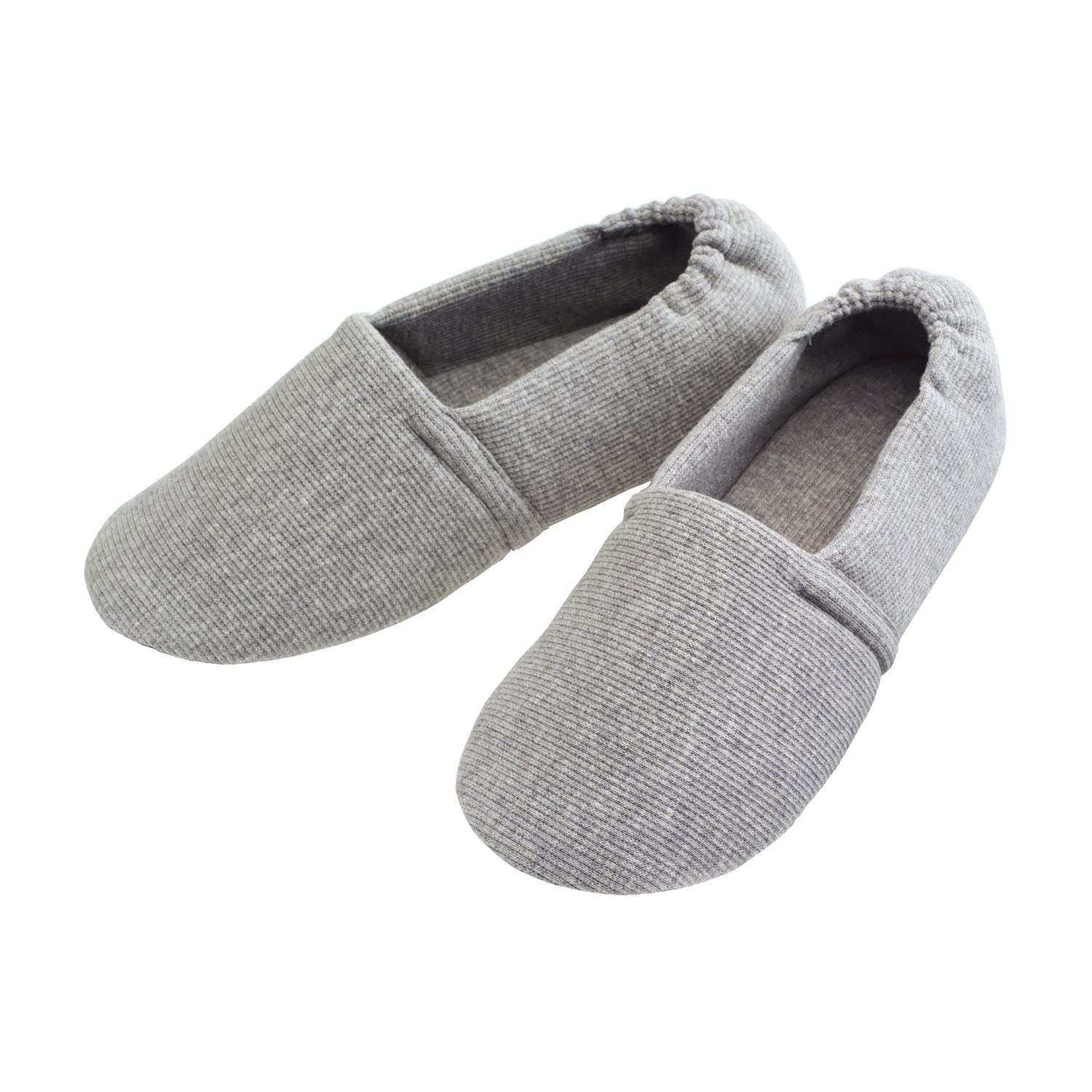 履きやすく、動きやすく、転倒しにくい安心設計。足入れしやすいのに脱げにくく、足に心地よくフィットするルームシューズです。ソフトで心地よい綿ニットのフィット感です。