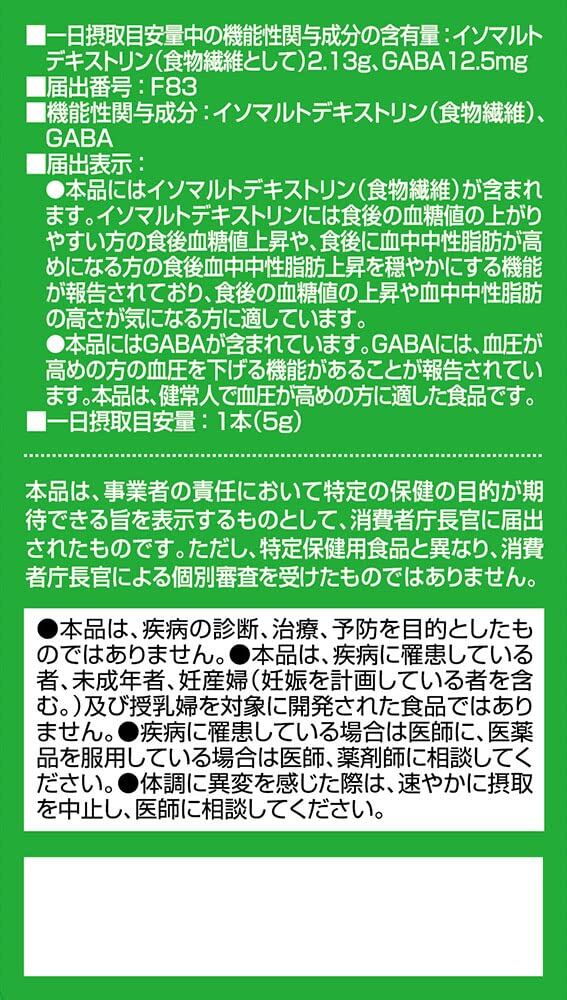 イソマルトデキストリン、大麦若葉末、桑の葉末、クマザサ末、GABA/糊料(プルラン)