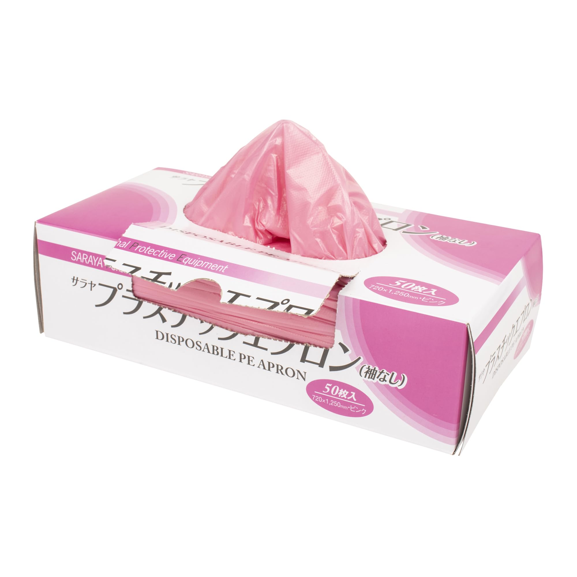 サラヤ プラスチックエプロン 袖なし 50枚入 ピンク フリーサイズ 使い捨て 51076