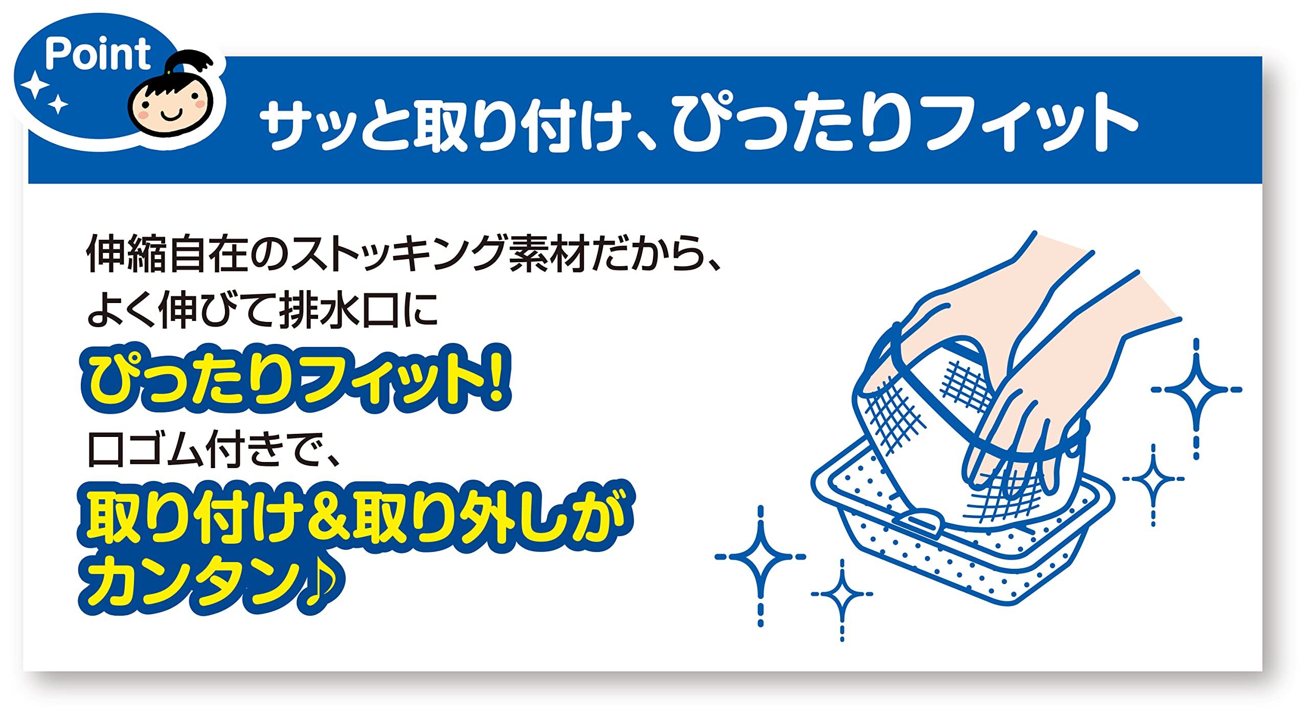 ●キチントさんダストマン●浅型は、浅型排水口専用の水切りゴミ袋です●天然抗菌成分キトサン配合!ヌメリ、悪臭の発生を抑えてキッチンを清潔に保ちます●深さが10cm以下の浅型排水口用バスケットに使用できます●細かい網目のストッキング素材で水切れスムーズ小さなゴミもしっかりキャッチ●よく伸びてぴったりフィットするから、取り付けが簡単