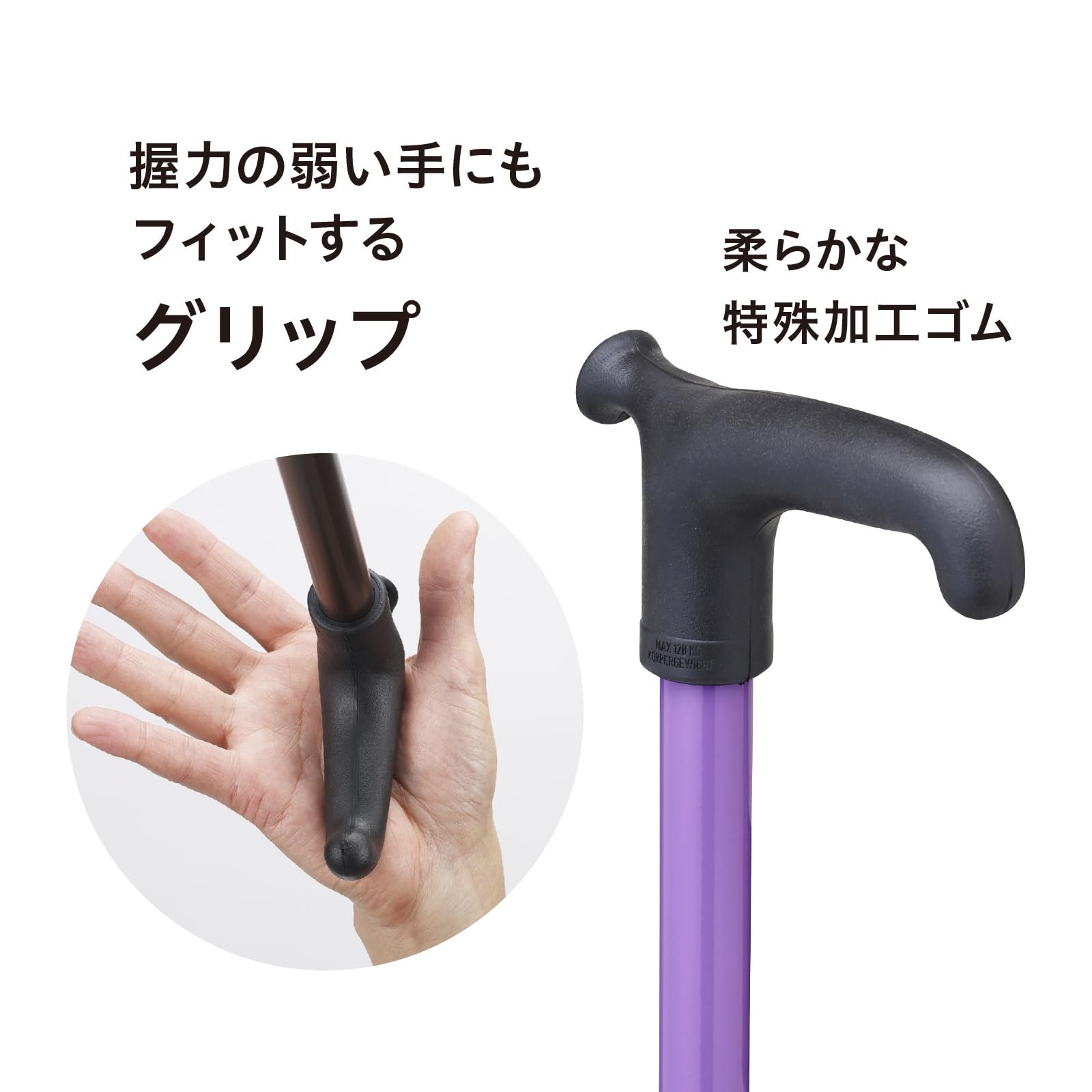握力の弱い手にもフィットするグリップ。