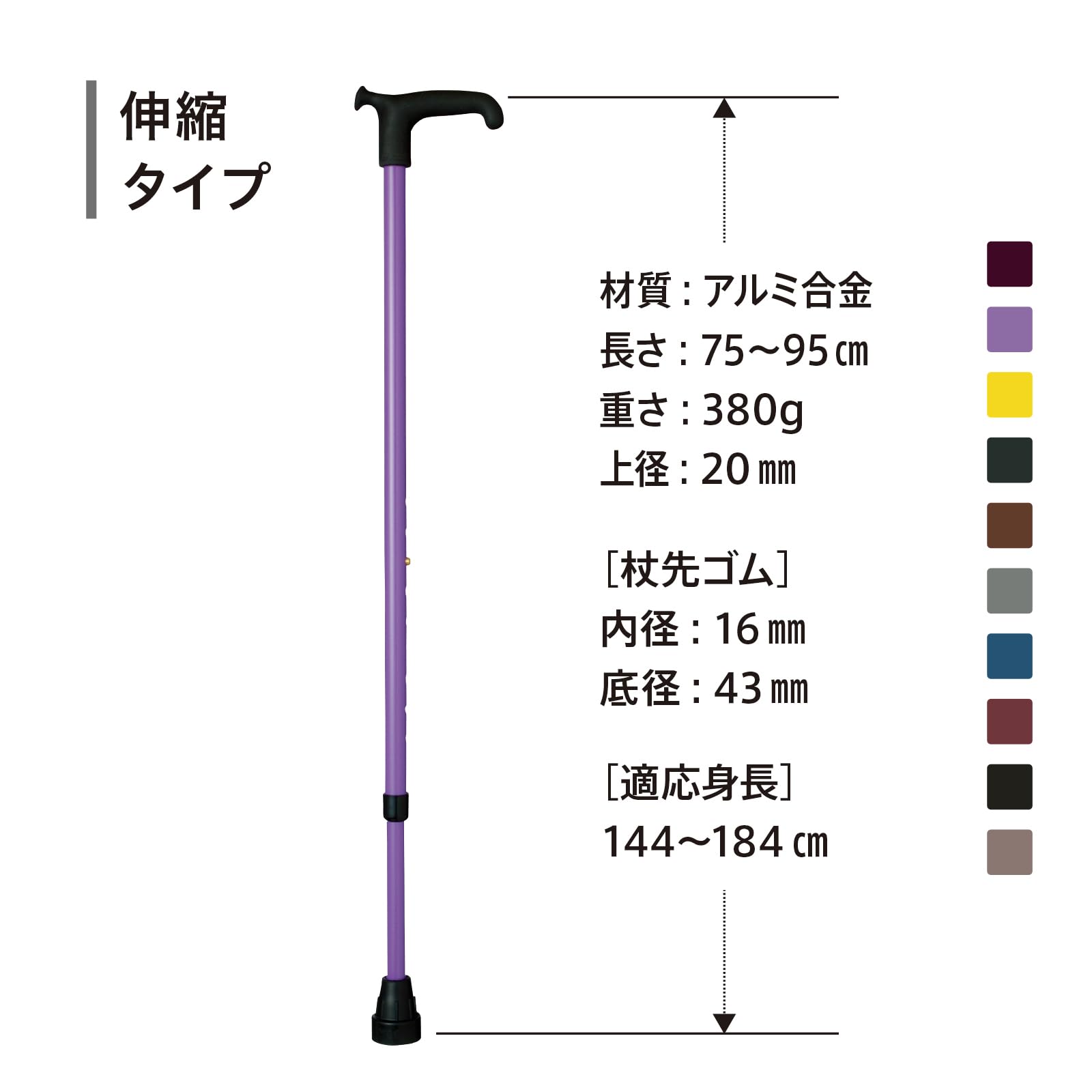 杖の長さ:約75〜95cm(2.5cm間隔の9段階調節式)