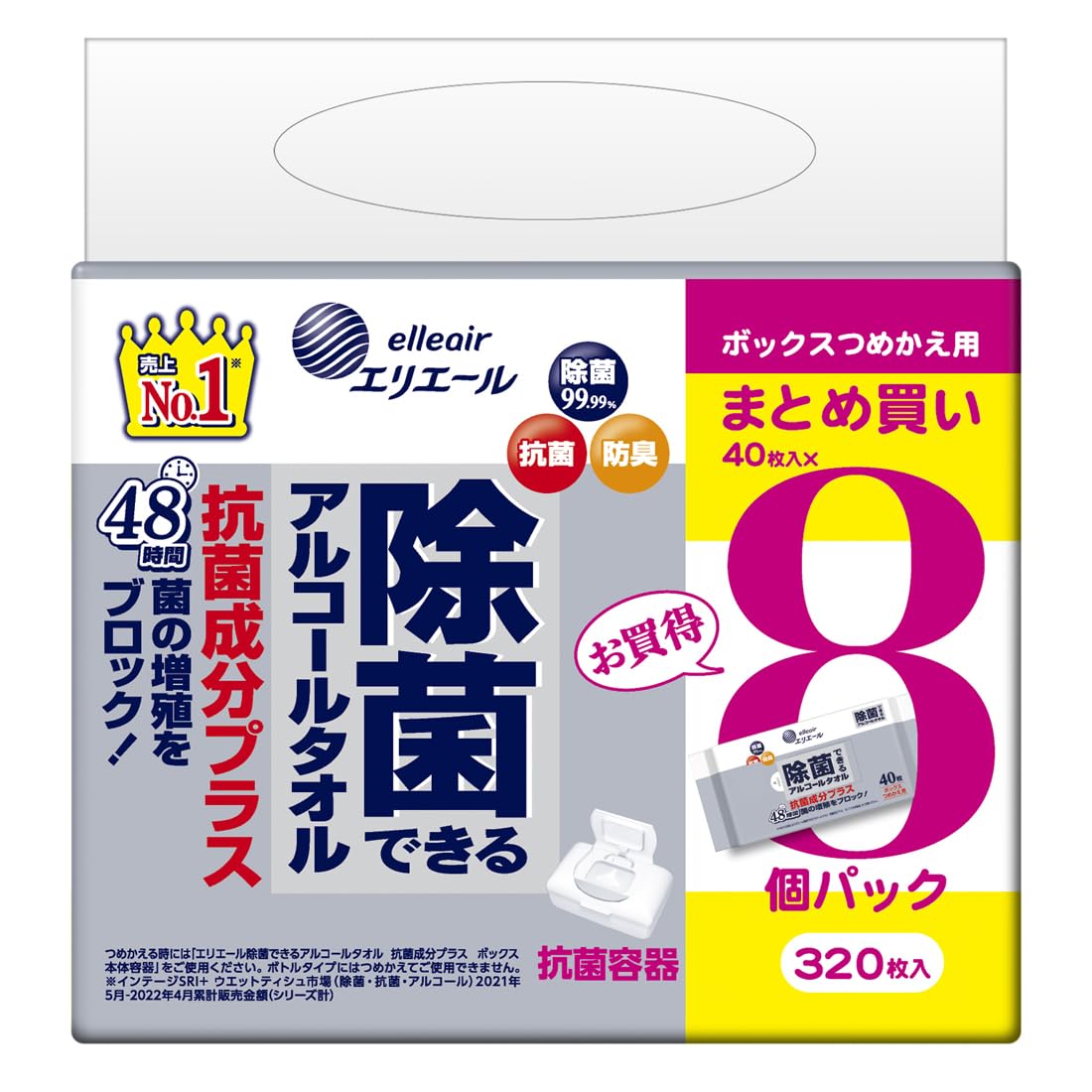 【大特価セール】エリエール 除菌できるアルコールタオル 抗菌成分プラス ボックスつめかえ用 40枚×8P