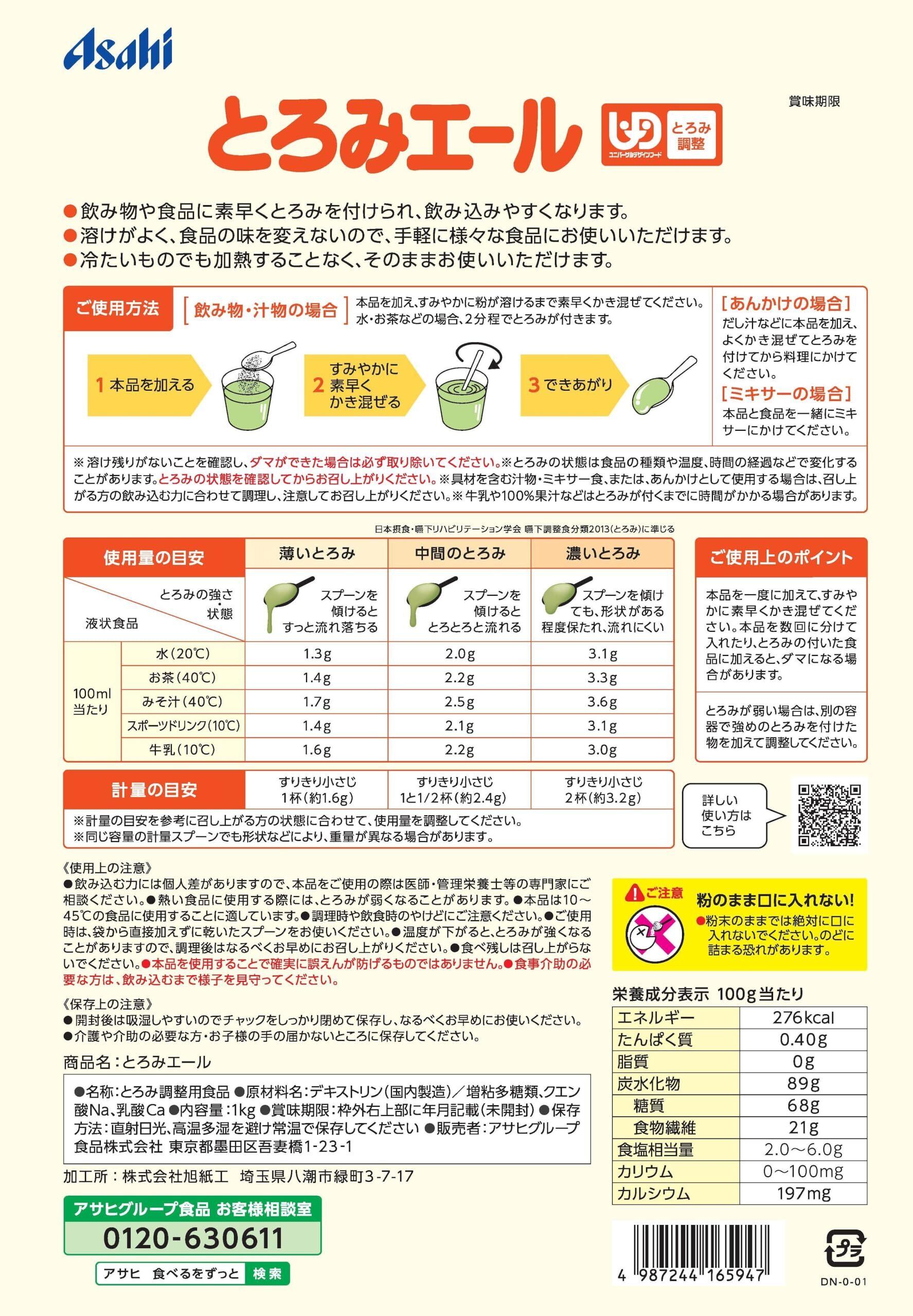 食品に加えるだけで、適度なとろみがつけられます。溶解性に優れ、食品本来の風味を損ないませんので、手軽に様々な食品にお使いいただけます。お得な大容量タイプ。