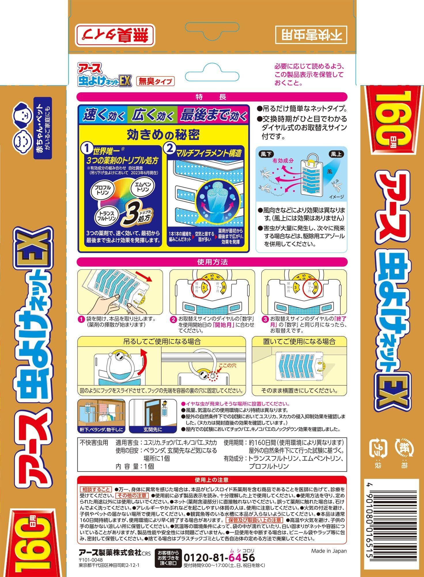 アース虫よけネットEX ベランダ用 虫除けプレート 吊り下げ型 [160日用]