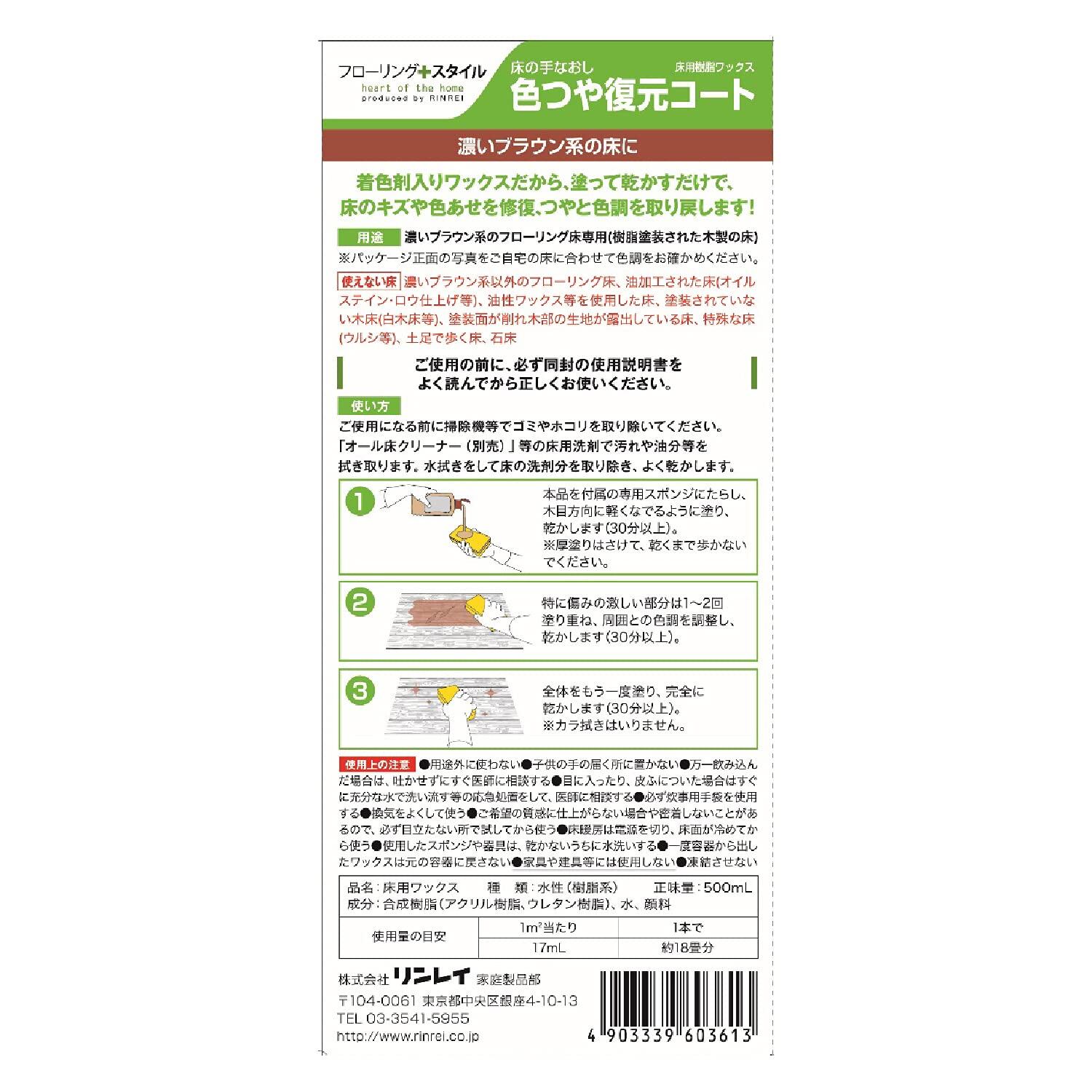 リンレイ 床の手なおし 色つや復元コート 濃いブラウン系 500mL