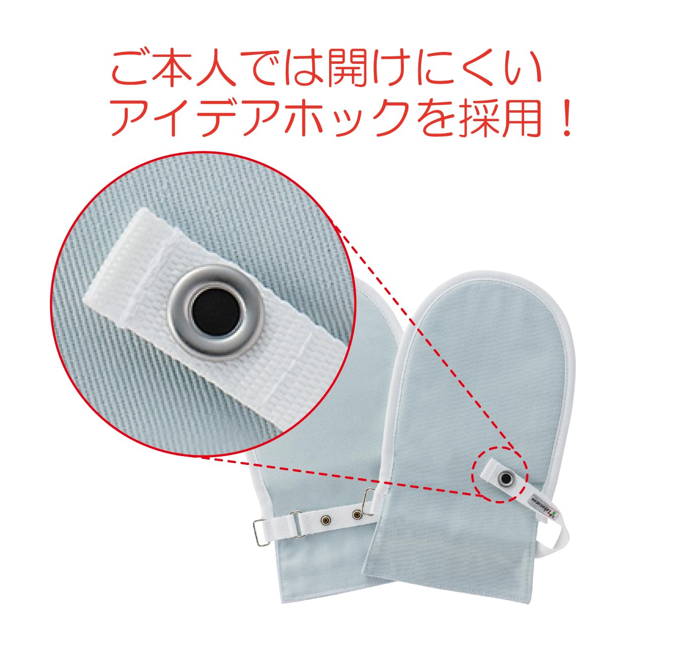 危険な行為やおむついじりに対応する、アイデアホックを採用した介護用てぶくろです。
