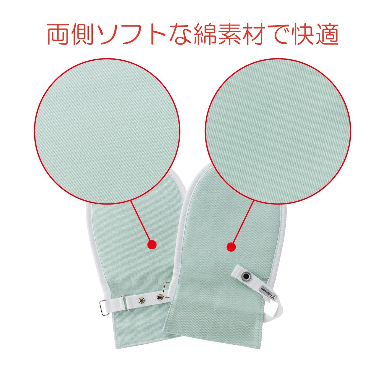 危険な行為やおむついじりに対応する、アイデアホックを採用した介護用てぶくろです。