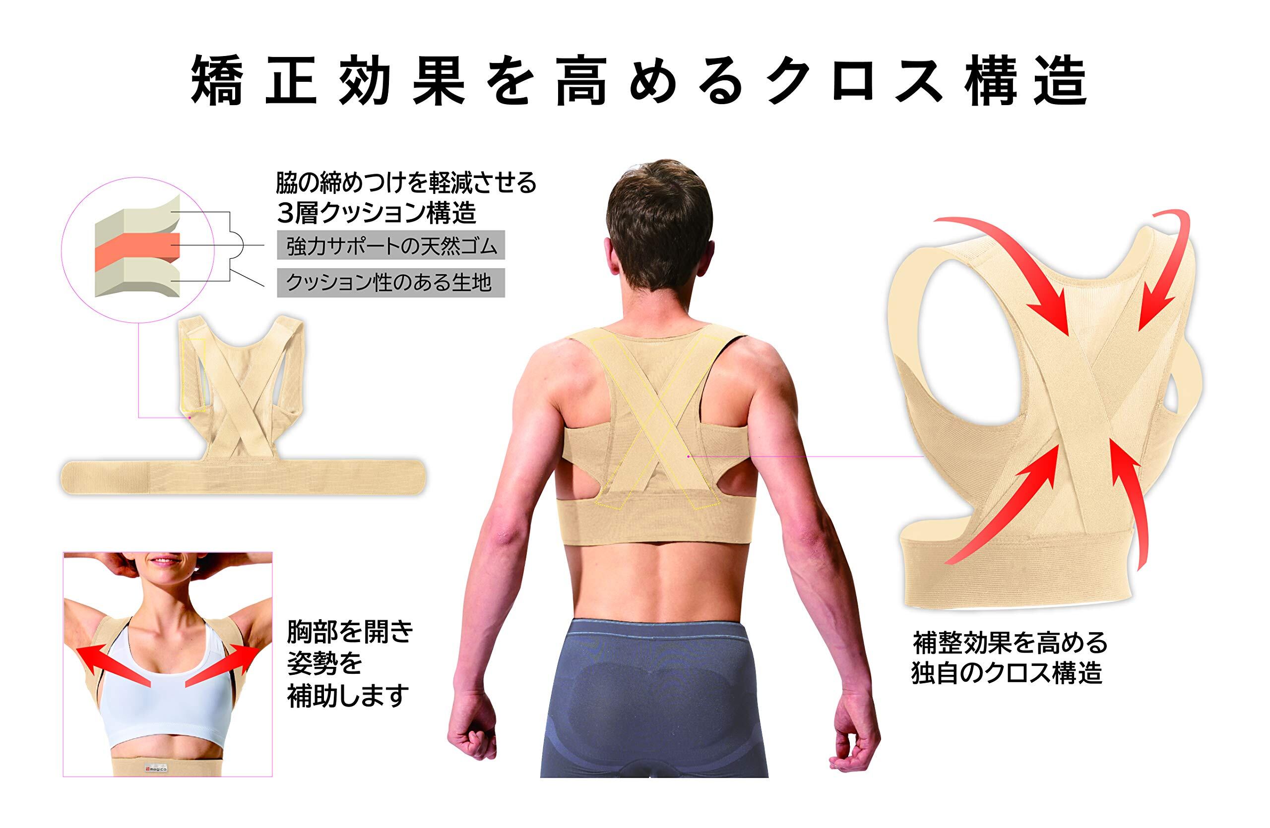 胸椎の形状を整える二重生地構造と、矯正効果を高める独自のクロス構造の背筋矯正ベルトです。