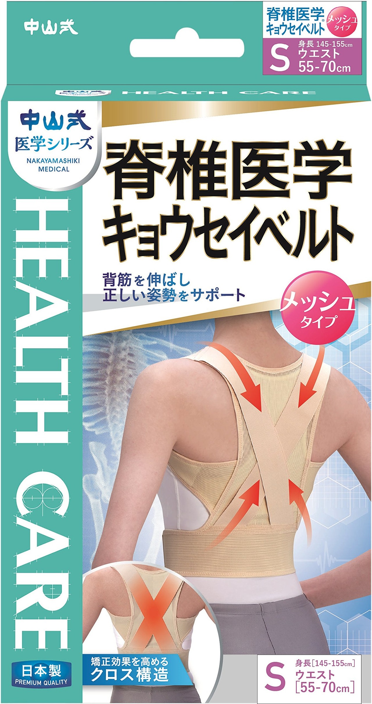 中山式 脊椎医学 キョウセイベルト メッシュ Sサイズ ウエスト 55~70cm 身長 145~155cm