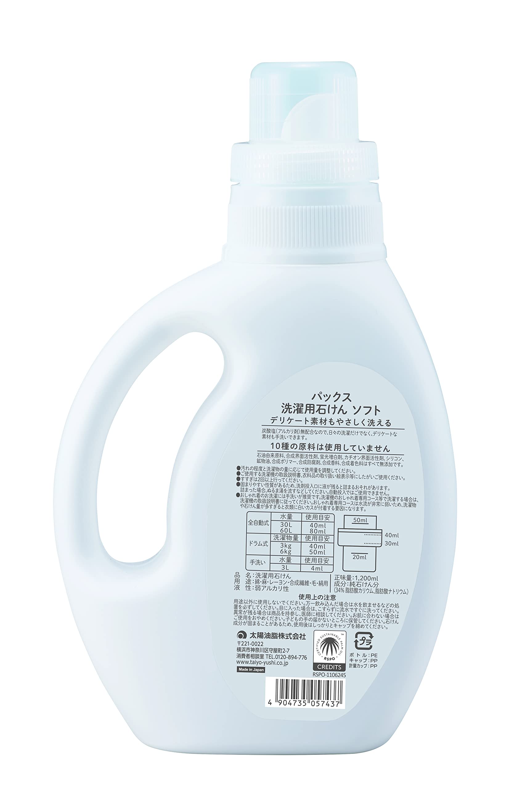 【限定大特価】パックス 洗濯用石けんソフト 1200ml 敏感肌 無添加 無香料 おしゃれ着 天然由来100% 洗濯洗剤 太陽油脂