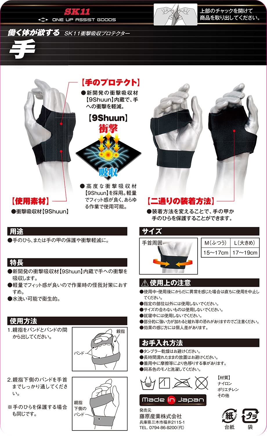 SK11 衝撃吸収プロテクター 手の平・手の甲用 M 9SH-TE-M