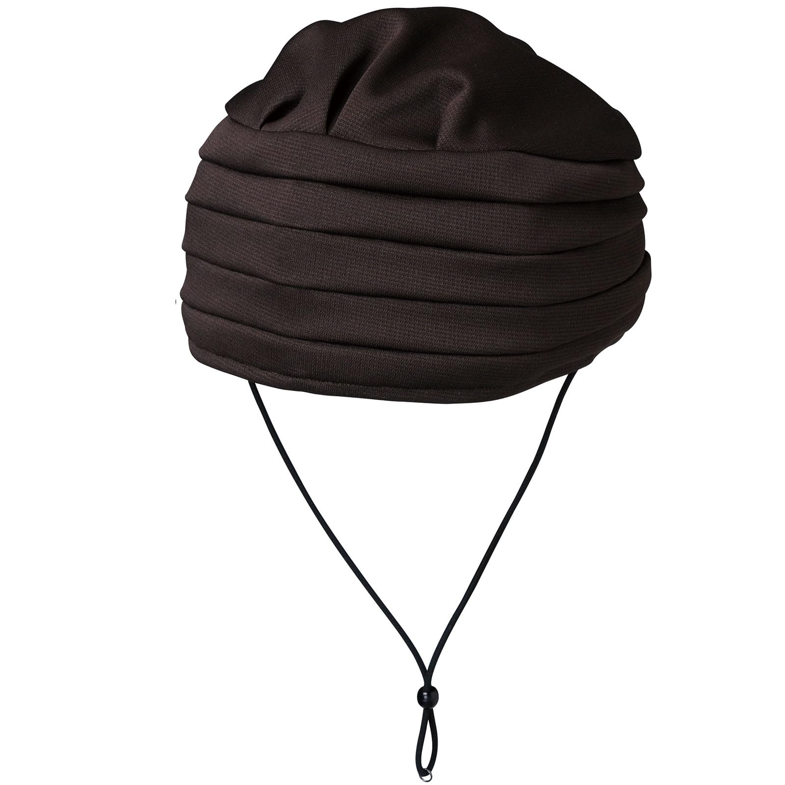 ○頭部全体を保護できるフルパッド仕様。おしゃれなターバンタイプ。つばが無いので屋外でも室内でも気軽にかぶれます。あごひもはゴム製です。