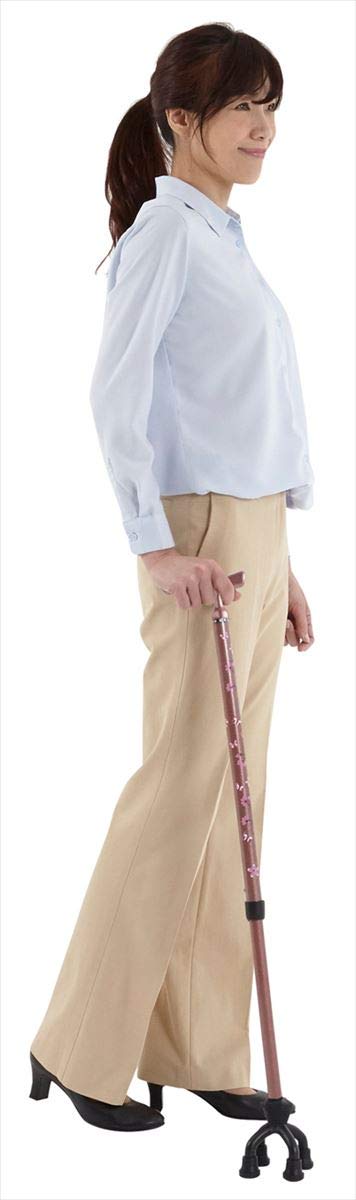 島製作所 アルミMIX四点可動式杖 スモールタイプ75MA 桜柄ローズピンク