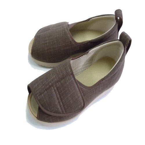 介護シューズ あゆみ オープン和 なごみ 施設・院内用 茶 3Lサイズ(25.0~25.5cm) 足囲3E 両足
