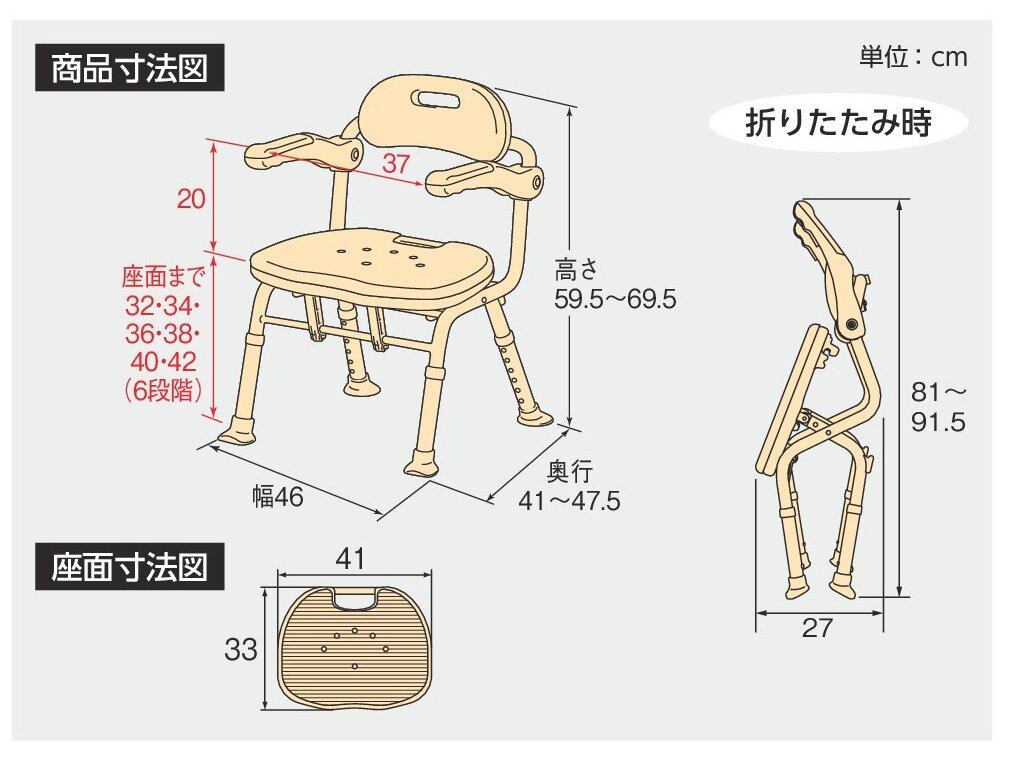 製品サイズ:幅46×奥行41~47.5×高さ59.5~69.5cm
