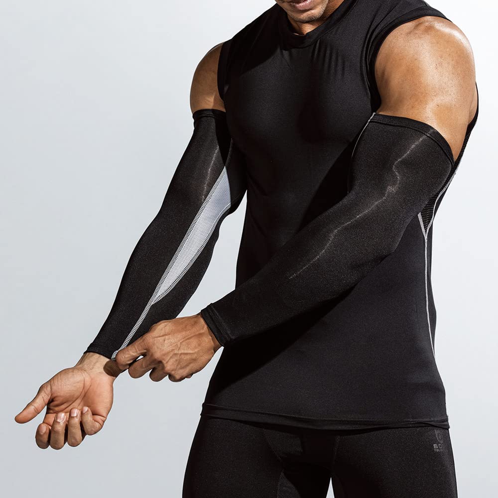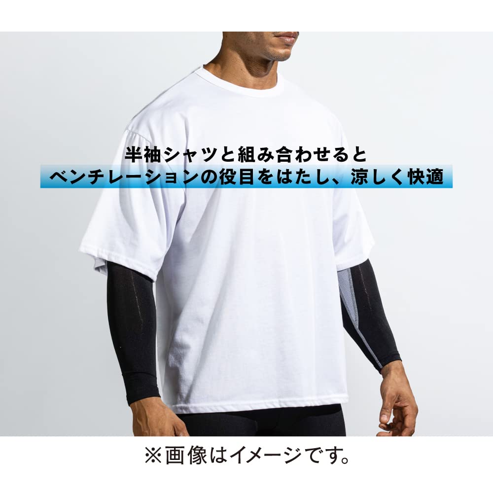 おたふく手袋 夏用アームカバー [コンプレッション 吸汗速乾 UVカット 接触冷感 内側メッシュ メンズ] JW-619 ブラックxグレー L