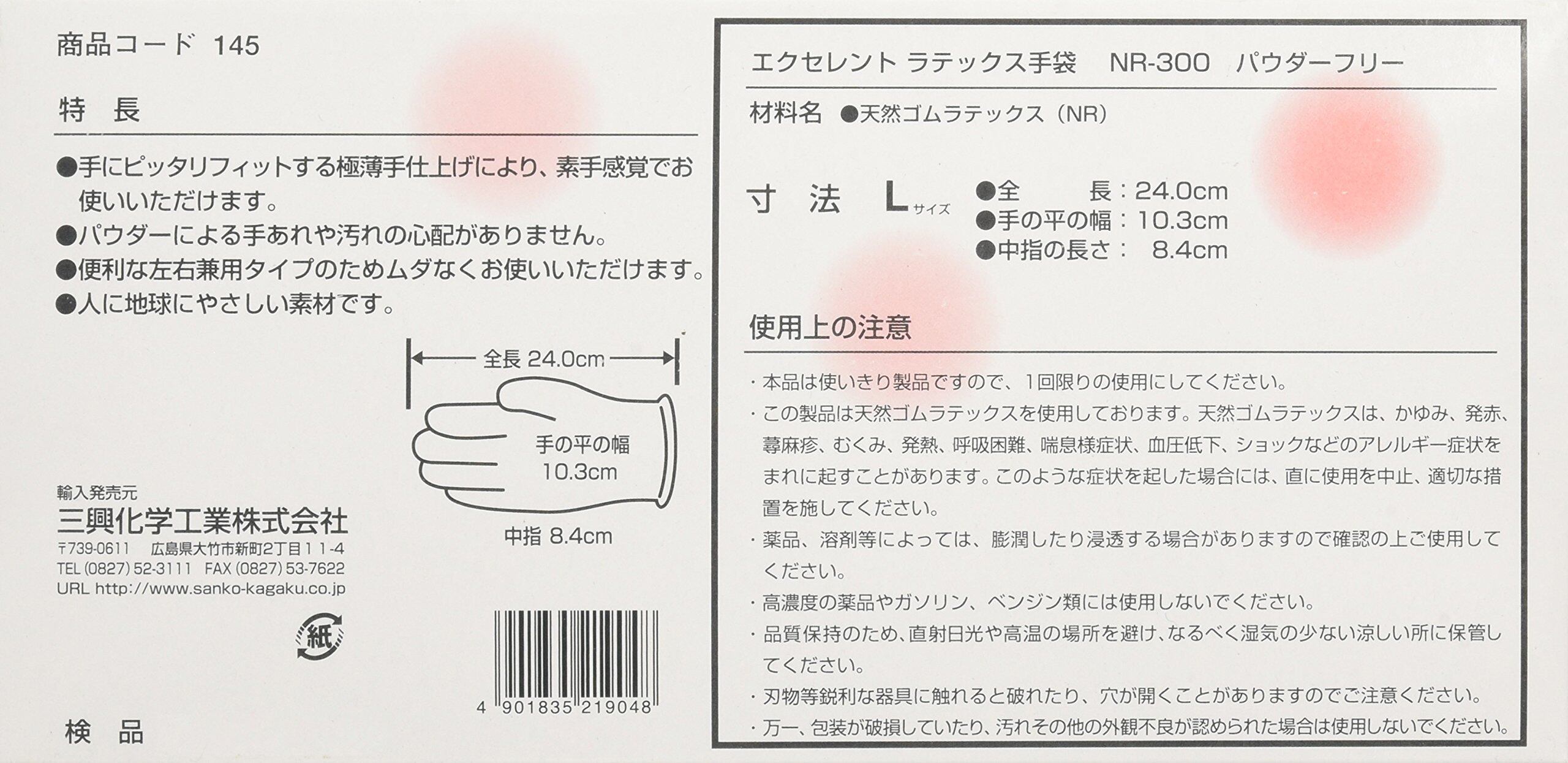 エクセレントラテックス手袋PF NR-300(100マイイリ) L