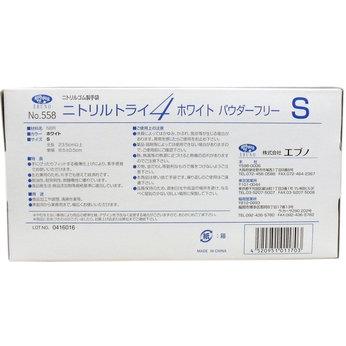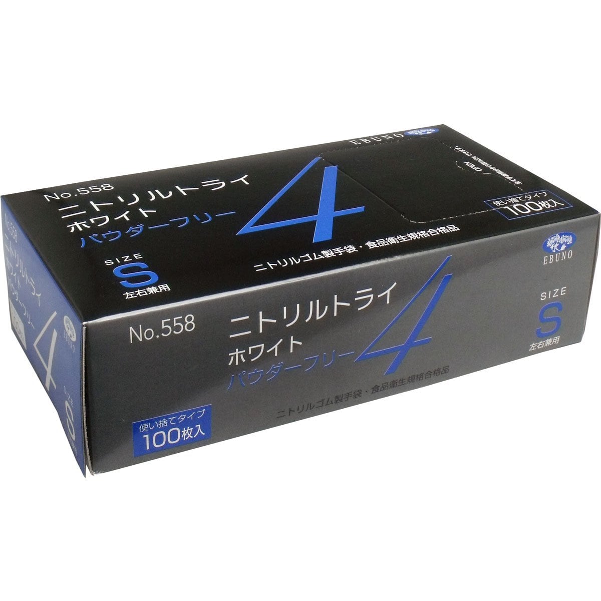 ニトリルトライ4 №558 ホワイト 粉無 Sサイズ 100枚入