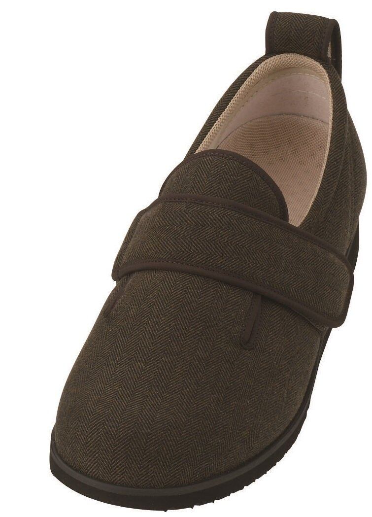 【最新商品】徳武産業 介護シューズ あゆみ ダブルマジックIIヘリンボン 外出用 メンズ 茶 3Lサイズ(25.0~25.5cm) 足囲7E 片足(左足)