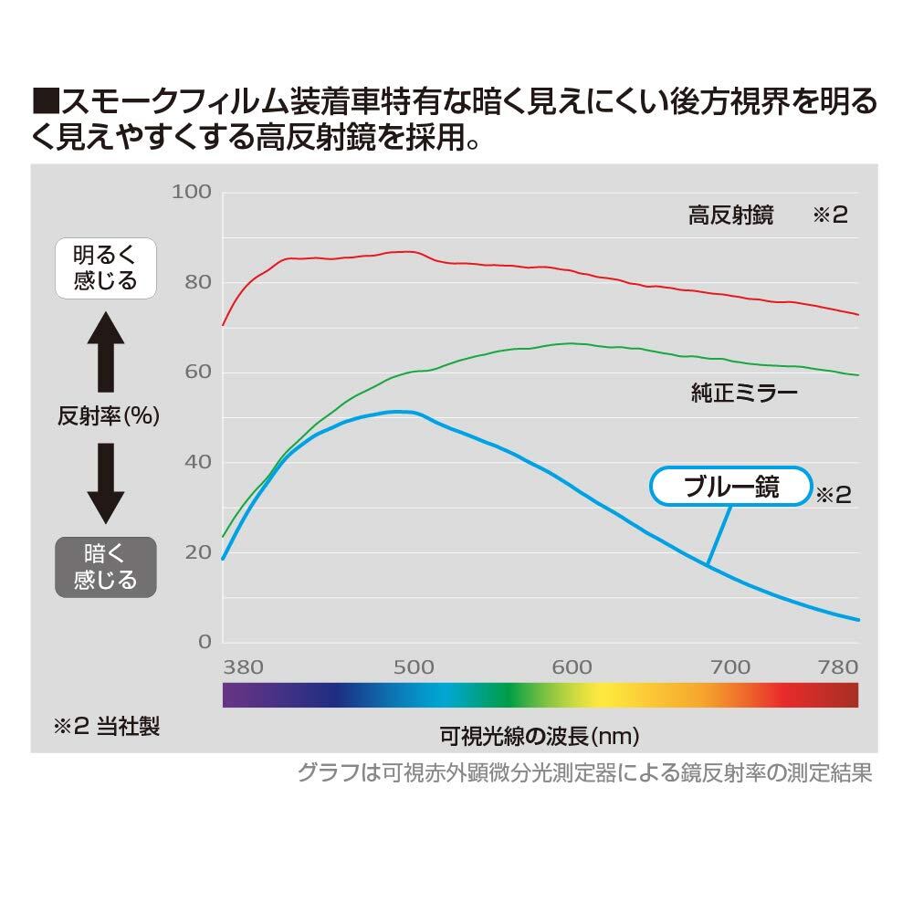 ■後続車のヘッドライトの眩しさを低減させるブルー鏡を採用。