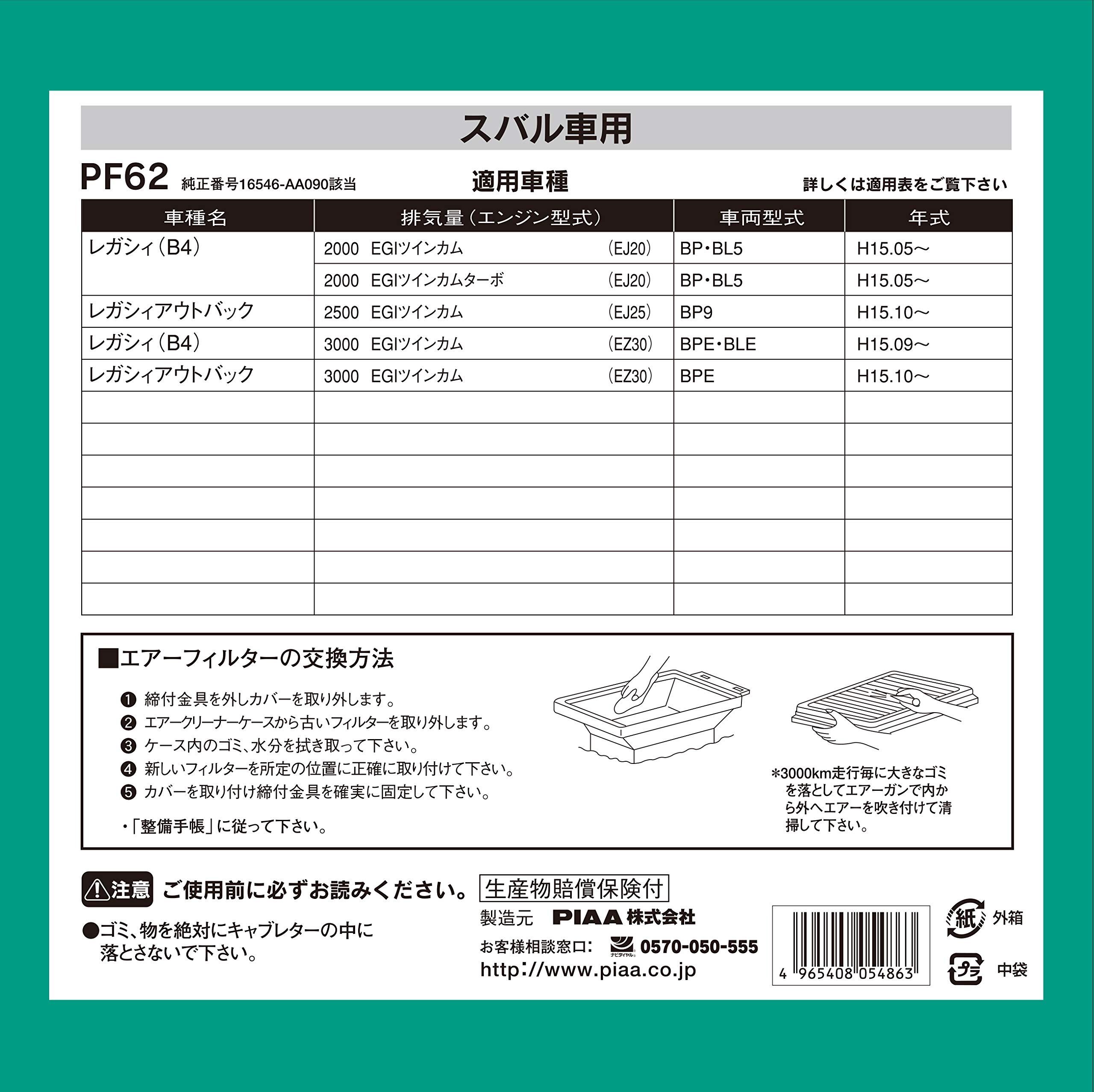 PIAA(ピア) エアーフィルター (エアフィルター) 1個入 [スバル車用] レガシィ・レヴォーグ_他 PF62