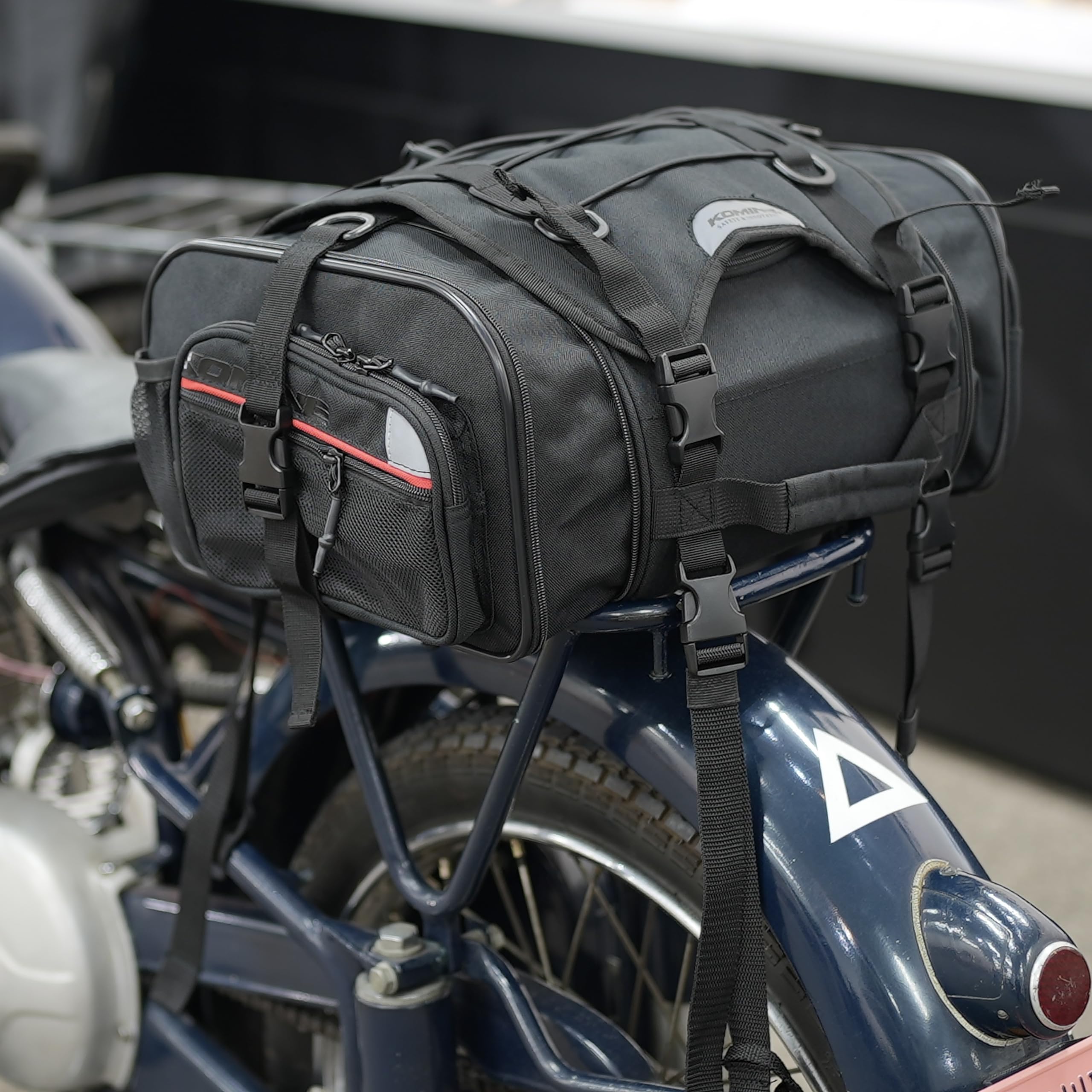 デイリーユースでも使いやすい容量のシートバッグ。シンプルなドラム形状のバッグ本体には型崩れを防ぐワイヤーフレームと樹脂製フレームを内蔵。両サイドのポケットと上部の大型フラップにより、日帰りから一泊程度のツーリングに対応可能。両サイドの拡張ジッパーにより、26Lまで拡張可能。 ●Dimensions(mm) : H200×W360(510)×D300