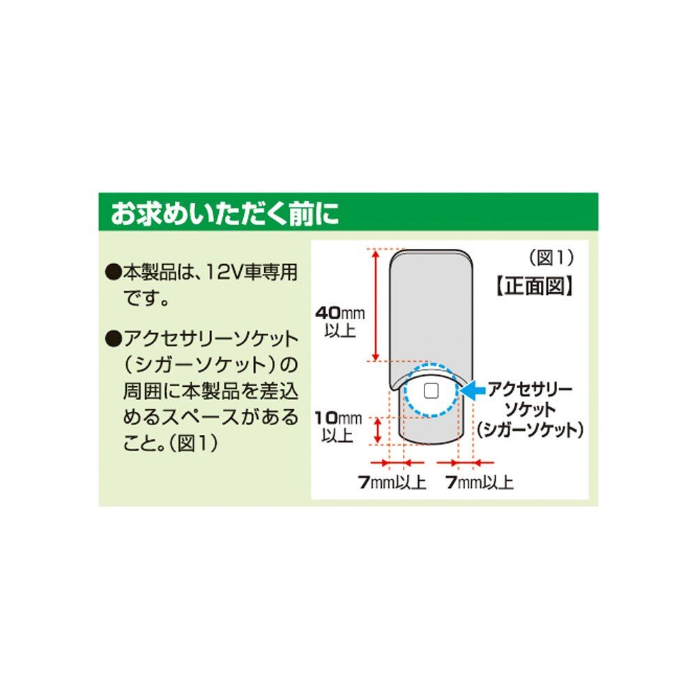 ●エアバックの作動や運転の妨げになる場所には取付けないこと。●常時通電するアクセサリーソケット(シガーソケット)の場合、使用しない時は本製品のスイッチをOFFにすること。