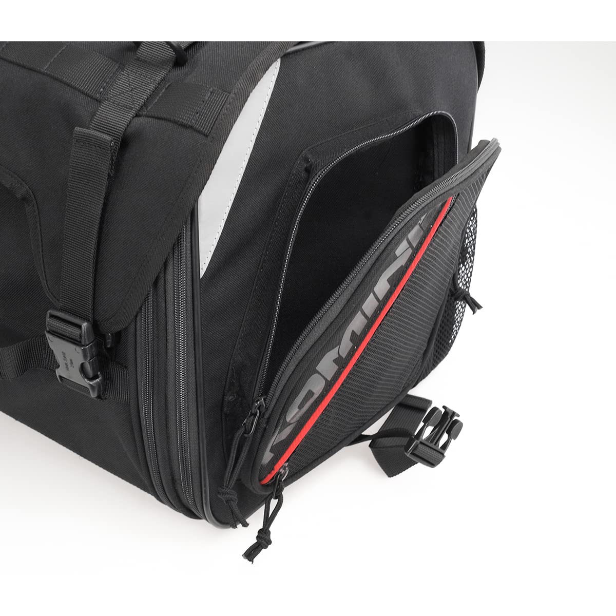 積載性を重視した、一泊から一週間程度のツーリングに対応する大容量のシートバッグ。シンプルなドラム形状のバッグ本体には型崩れを防ぐワイヤーフレームと樹脂製フレームを内蔵。両サイドの拡張ジッパーにより、58Lまで拡張可能。 ●Dimensions(mm) : H310×W470(670)×D320