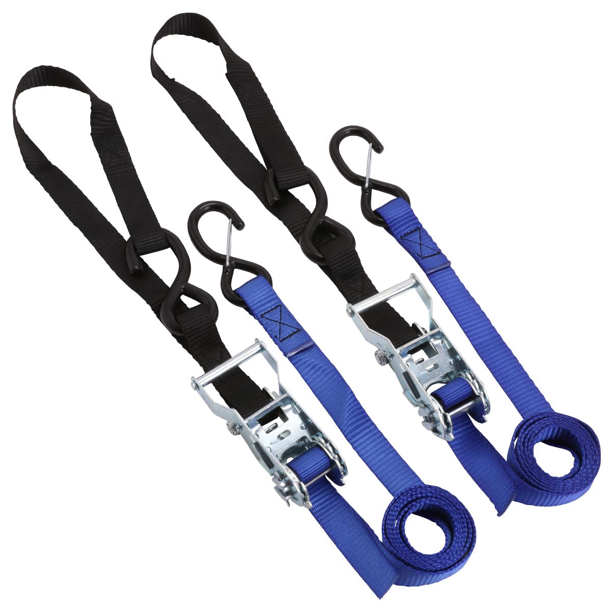【限定特価】ディーアールシー(DRC) T2ラチェットタイダウン 2本入り 狭い場所でも使いやすいラチェットタイプ 傷付き防止ストラップ 外れ防止フック 車両固定 トランポ ブルー D6423(旧品番:D36-05-510) ダートフリーク DIRTFREAK | ももくま屋さん