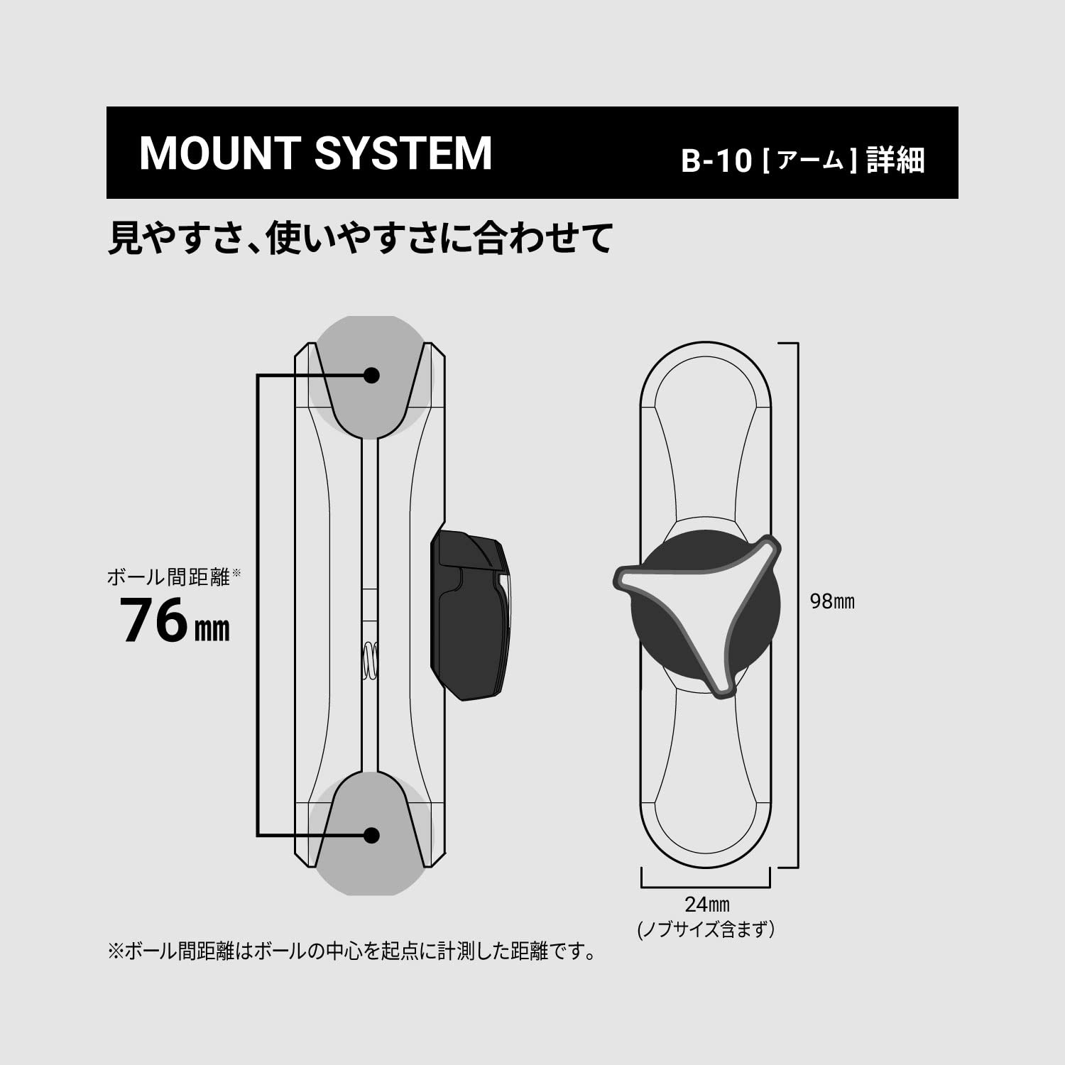 見やすさ、使いやすさに合わせて選べる3種のアームパーツ