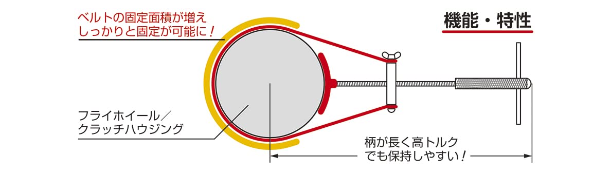 フライホイールやドライブフェイス、クラッチアウター等の脱着時に必要な工具です。
