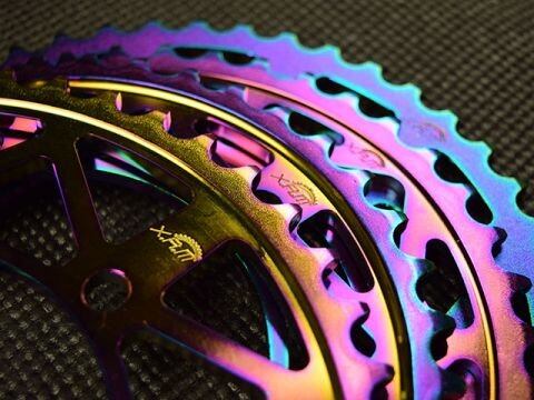 切削加工による精緻な構造のライトニングホール(新設計)は、従来のスチールスプロケット製品から大幅な軽量化を実現。