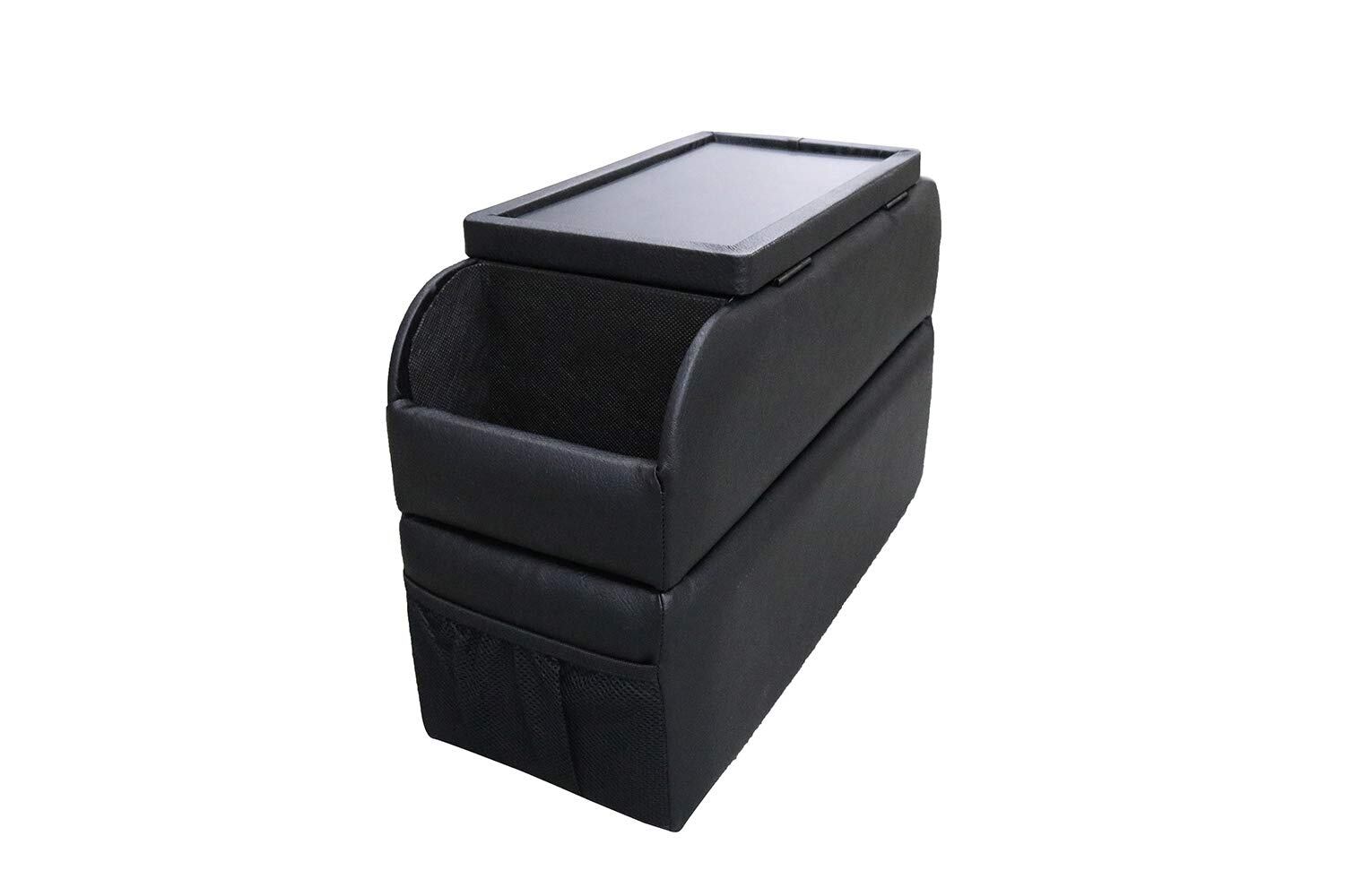 ノア・VOXY専用・トップは大型テーブル<br>●CD15枚、DVDなら11枚収納できるスライド収納<br>●BOXティッシュが入る大型収納<br>●後席側にもポケットを確保<br>●前席側に取出し易いポケットを装備<br>●前/後に便利なネット収納を確保