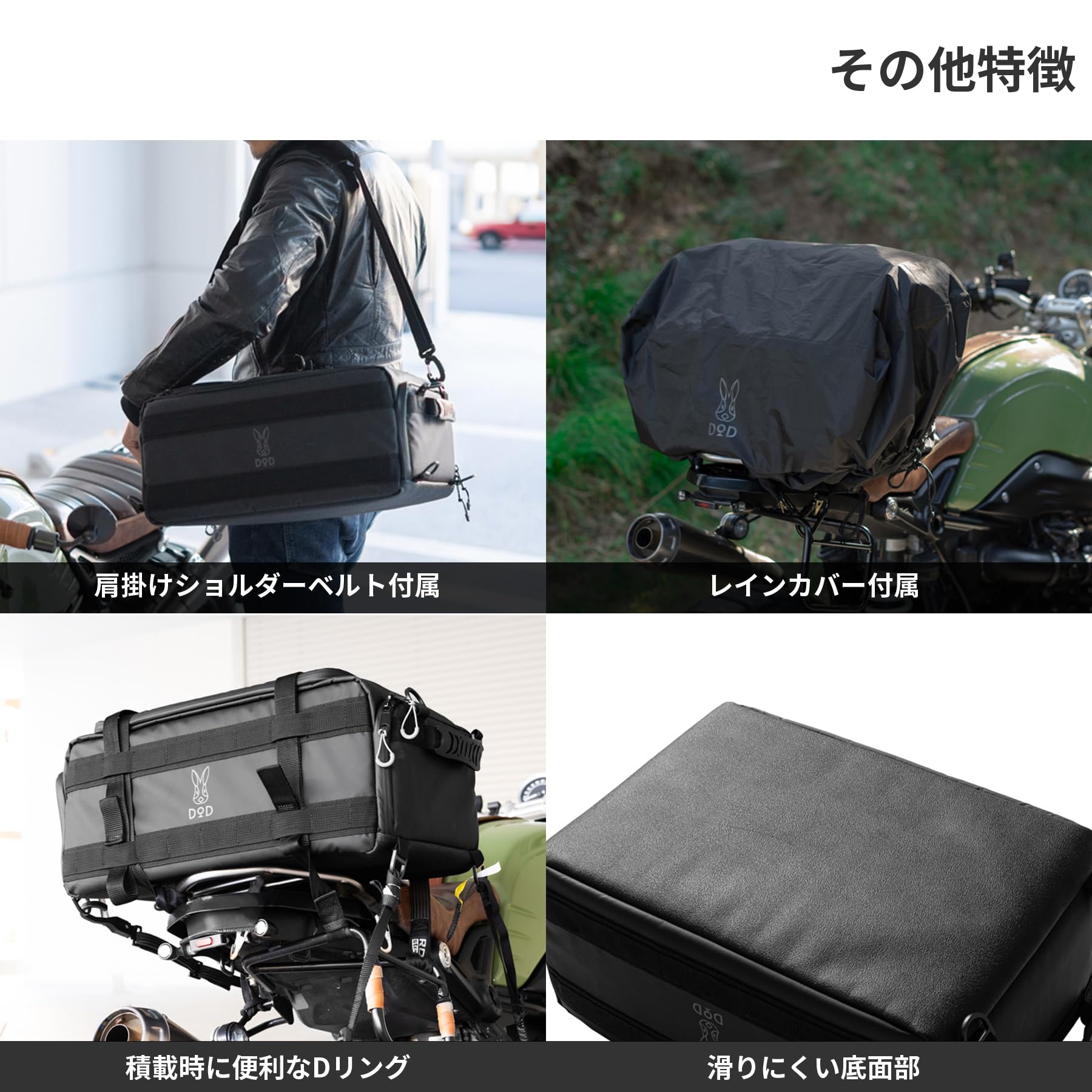 ※ツーリングバッグとして使用する場合はご自身のバイクに合った積載用バンドを別途ご用意ください。