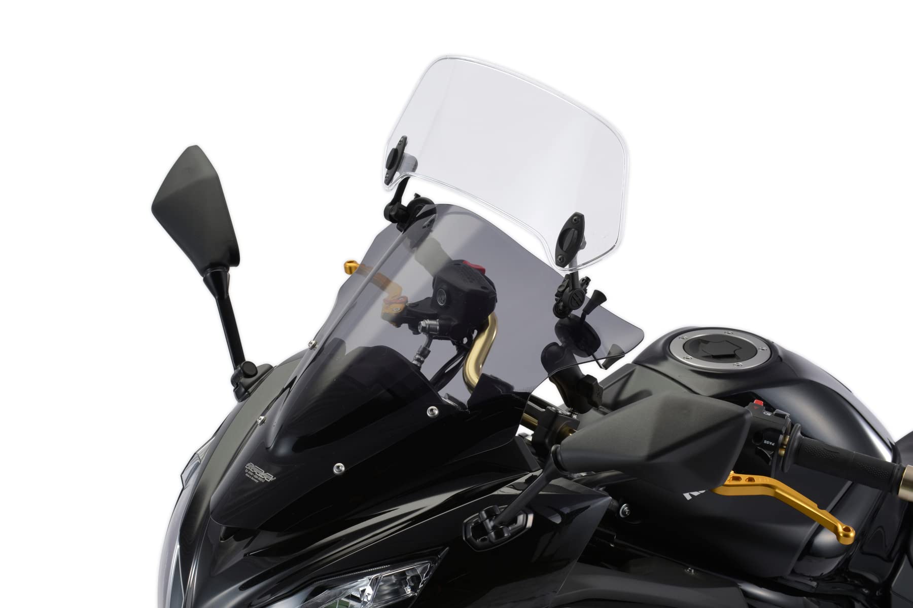 エクスクリーンツーリング用マウンティングキットは、エクスクリーンツーリングスクリーンを取り付ける際、取り付け対象の純正スクリーンやMRAスクリーンに穴あけ加工をすることなく装着させることが可能です。