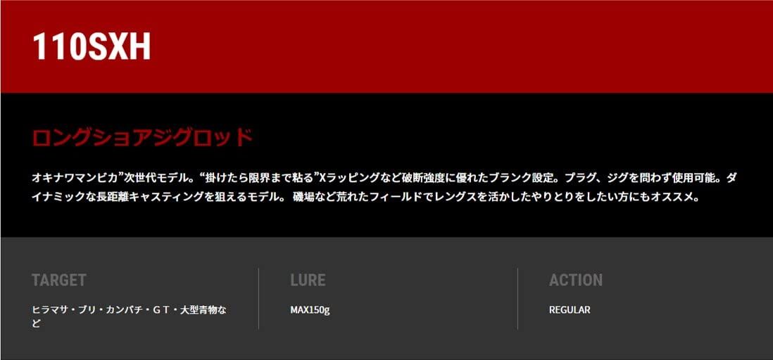 伝説のスーパーヘビーショアジグロッド"オキナワマンビカ"次世代モデル。"掛けたら限界まで粘る"Xラッピングなど破断強度に優れたブランク設定。プラグ、ジグを問わないプロフェッショナルモデル。