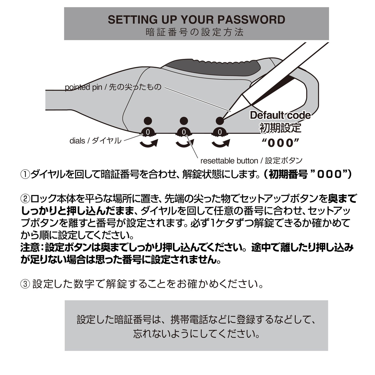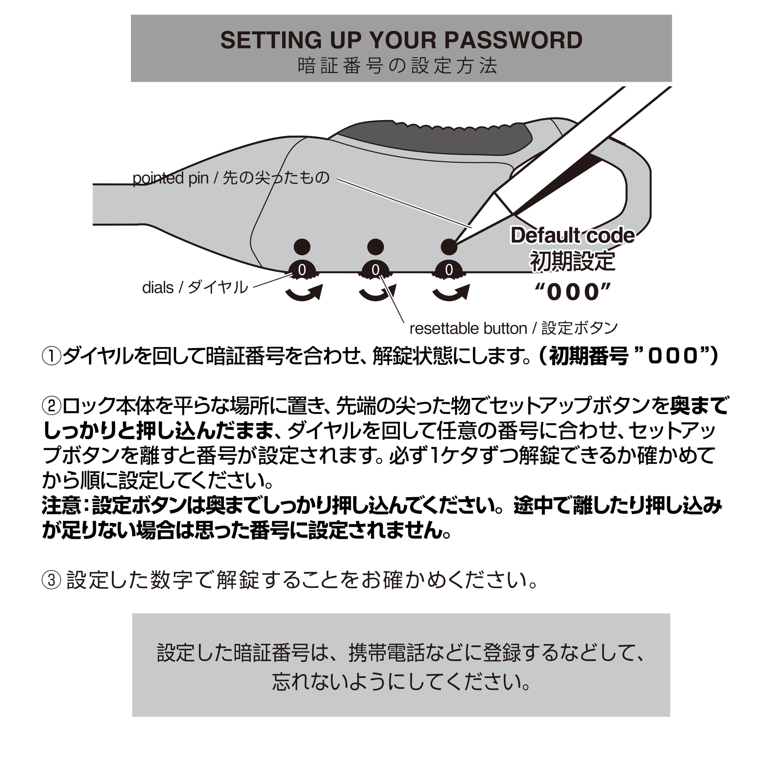 ロック方式:3桁ダイヤル