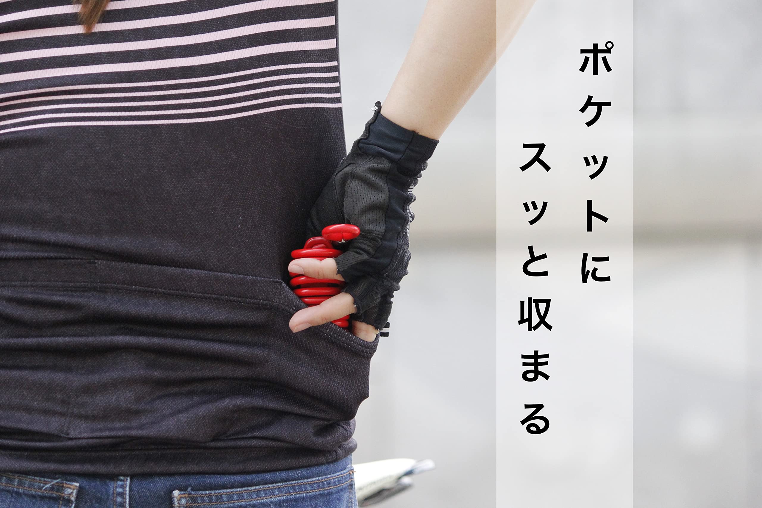 ・コイルにヘッドを収納して、よりコンパクトに! :大きめのコイル設計で、ヘッドをコイルケーブルの中に収納することができます。これにより、サイクルウェアのポケットやバッグなどにすっぽり収まります
