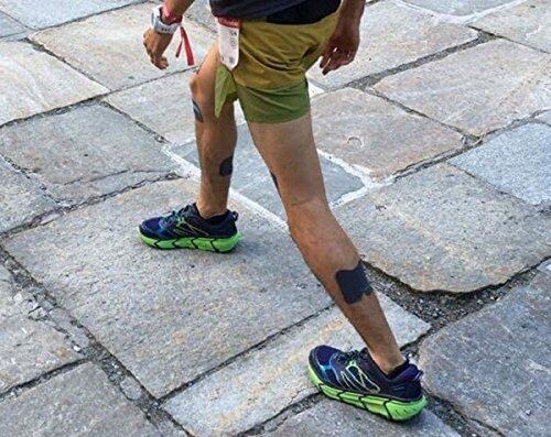 多くのアスリートのテストを終え、ヒザ下だけでなく、ふくらはぎ、アキレス腱、足底、足の甲、腕など様々な筋肉の揺れの防止や腱のサポートに効果を発揮します。