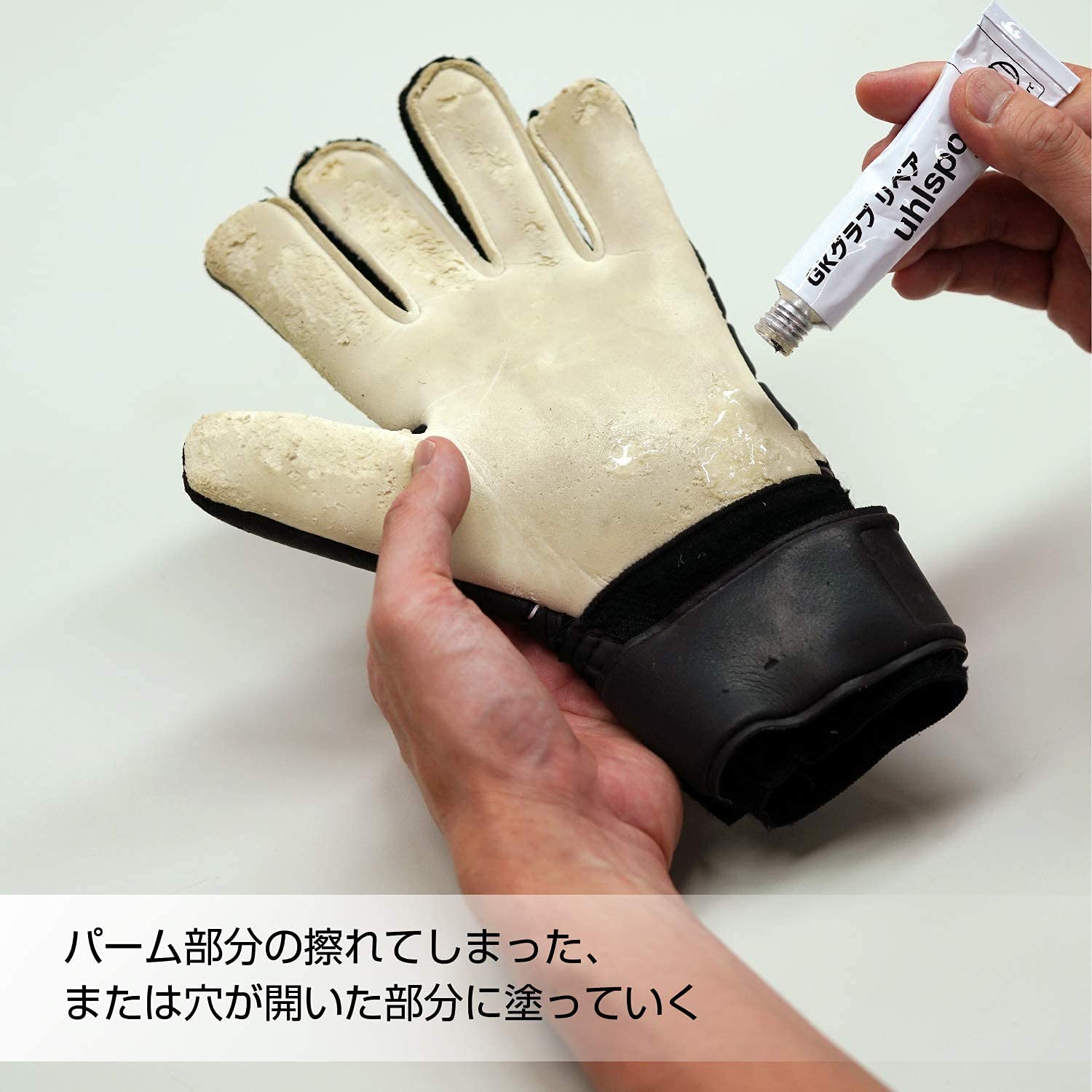 グラブはGKグラブリペアを塗布後、24時間以上放置したうえで使用してください。
