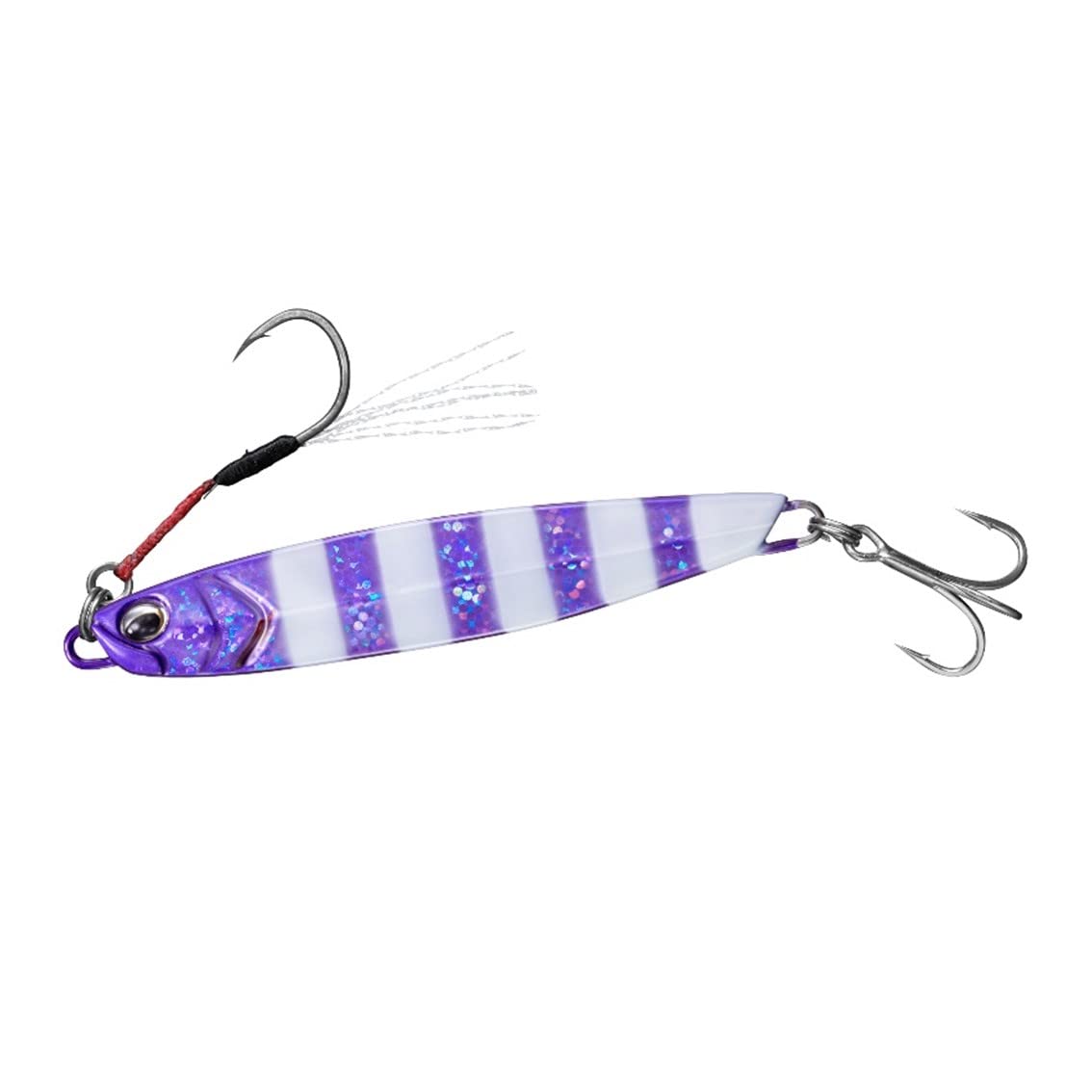 【ティンセルでさらに誘惑&触ったら最後!高い貫通力を誇るサクサスフック】 有ると無いとでは雲泥の差!サバやソウダガツオ、サワラをはじめとする小型ベイトを食べるフィッシュイーターに高い誘因力を発揮するティンセルを装備。フックはフッ素コートで抜群の貫通力を持つサクサスフック。アシストを短くしたことでフッキングのレスポンスと糸がらみも解消。触れた瞬間、ターゲットの口にフックが刺さる!