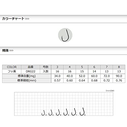 バラ針 グレ DRG22 ●カン付グレ(TCフッ素コート) ヒネリなし 中軸 ・ハリ結び、交換がスムーズなカン付仕様。刺さりの次元が違うフッ素コート! !