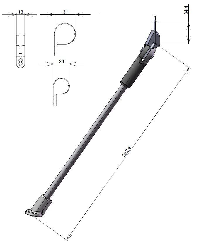 2穴仕様のP型クリップが2種類、スタンド取付穴も2か所設け、幅広い車種に対応。先端キャップ部を取り外しカットもしくは付属のワッシャーを使用することで細かな立ち角調整も可能